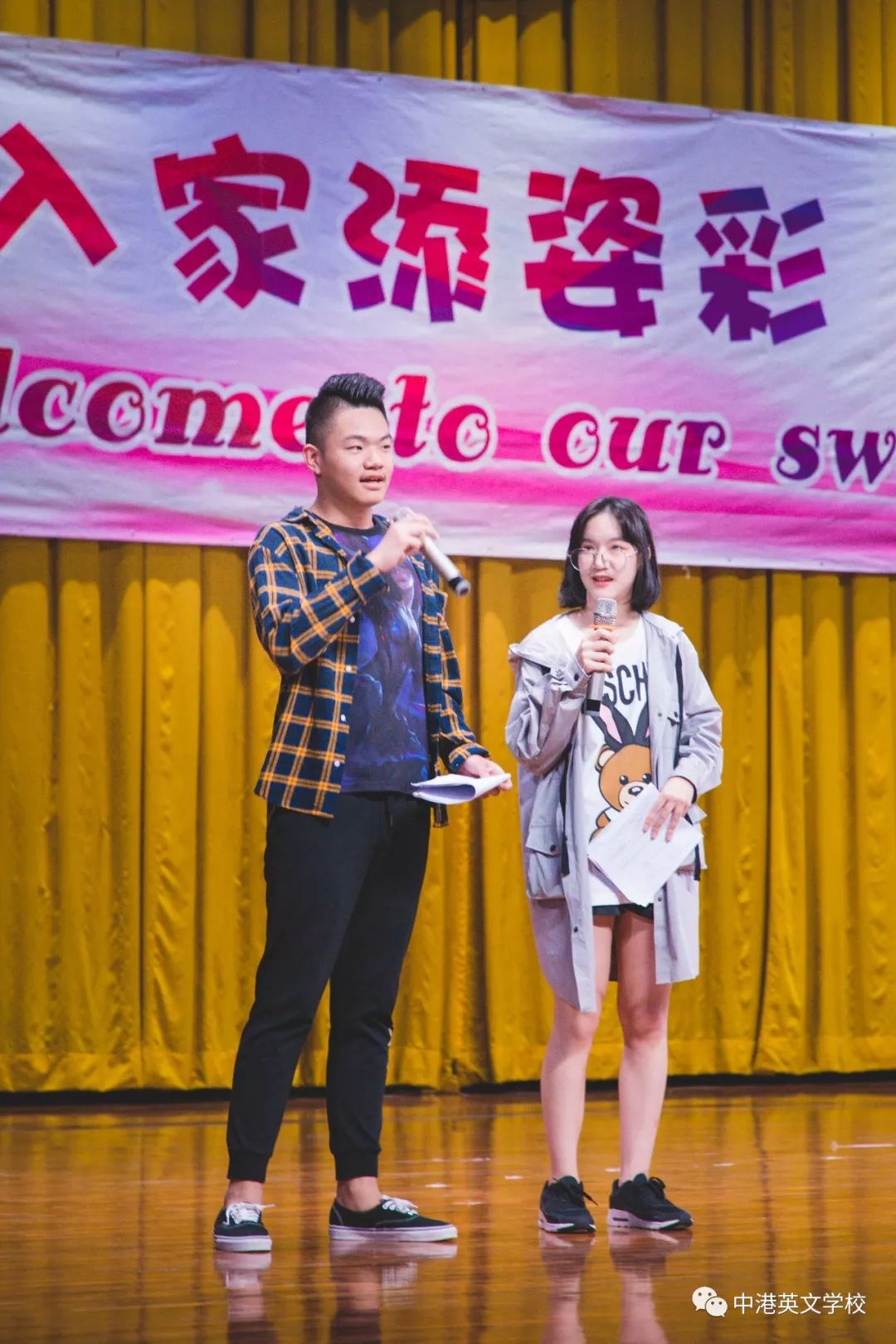 续梦中港,歌舞青春◆ ◆ ◆ ◆ 2018迎新晚会 Thursday,September 27,2018 致 走进中港的你 ◆ ◆ ◆ ◆ 这一夜星光熠熠 劲歌热舞,张扬个性 怀揣梦想 纷至沓来 我只想珍惜在九月遇见的每一个你 这个夜晚,是中港送给你的第一份礼物。 愿你有一个不悔的青春 愿你今后的中学生活,不负你的星辰大海。 为了迎接新同学,彰显青春活力、发扬集体精神,9月27日晚,中学住宿部自律委员会在谭宝玲主任的指导下积极策划,在礼堂组织了一场以“迎新入家添姿彩”为主题的迎新晚会,为崭新的中学生活绘上了绚丽的一笔。 晚会内容丰富,节目形式多样,有歌舞表演、钢琴独奏、猜灯谜、做月饼,董事长蔡国赞博士也亲临现场参与师生互动,大家玩得不亦乐乎。 歌曲演唱 F4C陈佳明钢琴独奏 舞 蹈 表 演 ![]() 猜 灯 谜